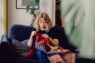 I create large scale textiles mostly through knitting and weaving, which often depict or reference other textiles or patterns found in domestic spaces.